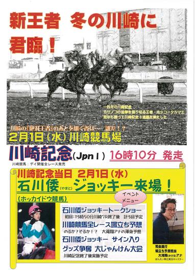 Aiba石狩(サテライト石狩)では、2月1日(水)石川倭騎手のトークショーや当日実施される川崎記念[JpnⅠ]をはじめとした川崎競馬全レースの場立ち予想などのイベントが実施されます(詳細は下記のリンクからご覧ください)。お近くの方はぜひ足をお運びください。