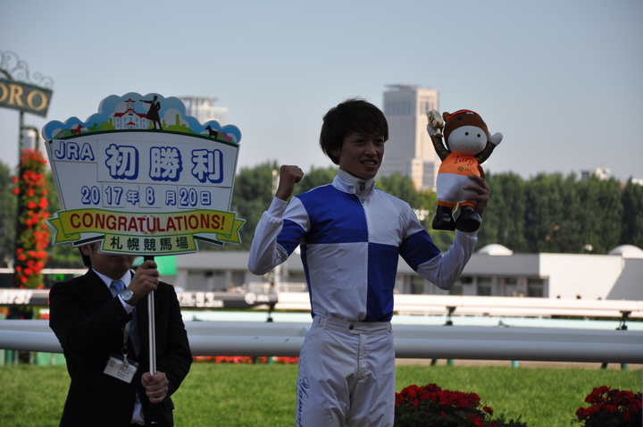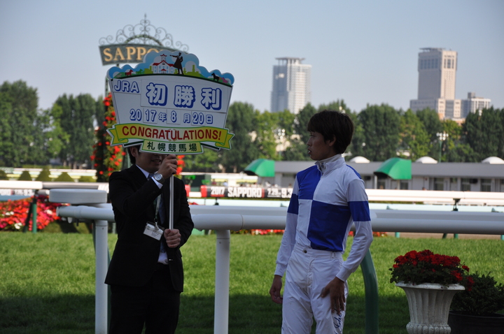 8月20日(日)JRA札幌競馬 第9競走 クローバー賞で、ダブルシャープ号が優勝し、鞍上の石川倭騎手は嬉しいJRA初勝利となりました。