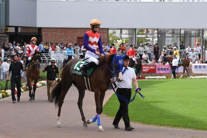 「前走から馬体重の増減はありませんでしたが、門別では430キロを超えていたので、想定していたより馬体は減ってしまいました。ただ、初めての輸送競馬や環境を考えれば、致し方なかったと思います。パドックでも落ち着いて周回していましたし、返し馬の雰囲気も良く、三浦皇成騎手が上手にエスコートしてくれました。今回の内容から、今後も芝を中心にしたローテーションを組もうかと思っています。反動などの心配もありますから、門別に戻ってから注意してケアをし、すずらん賞や福島2歳Sを視野に調整していければと思います」