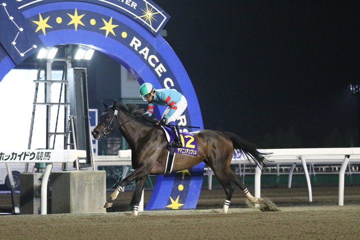 本日のメイン競走、農林水産大臣賞典 日刊スポーツ賞 第23回 北海道スプリントカップ(JpnⅢ)[ダート1,200m(外) 曇・稍重]が行われ、1番人気ヤマニンアンプリメ号が2着メイショウアイアン号に3馬身差をつけて優勝しました。(タイム:1.11.5)