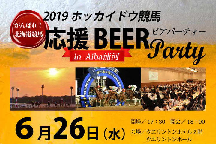 浦河町のウエリントンホテルにおいて、6月26日(水)に、「ホッカイドウ競馬 応援ビアパーティー」が開催されますので、お近くの方はぜひ足をお運びください。