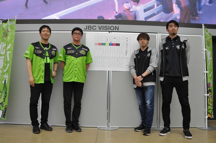 本日(7月3日)、門別競馬場では昨年に続き2回目となる、地元・北海道のプロバスケットボールチーム「レバンガ北海道」とのタイアップイベント「レバンガ北海道ティップオフナイター」を実施しました!イベントでは「レバンガ北海道×北海道日本ハムファイターズ コラボベースボールシャツ」&「2018-19 SEASON公式ファンブック」セットが当たる抽選会を実施した他、ファン交流会・予想トークステージではレバンガ北海道所属の多嶋朝飛選手・川邉亮平選手が登場し、軽快なトークで場内を盛り上げていただきました♪