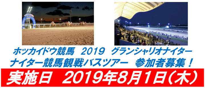 【ホッカイドウ競馬 2019 グランシャリオナイター ナイター競馬観戦バスツアー 概要はこちら】