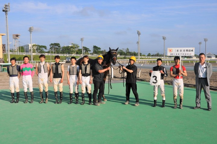 岩橋勇二騎手800勝達成 その他 2019.07.09 7月9日(火)、門別競馬 第6競走で岩橋 勇二(いわはし ゆうじ)騎手(田中 淳司きゅう舎所属)がマイネルオルガノ号に騎乗し7,264戦目で800勝を達成しました。 口取りの様子