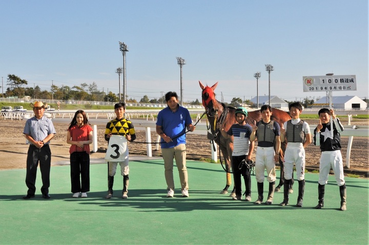 落合玄太騎手100勝達成 その他 2019.09.10 9月10日(火)、門別競馬 第2競走で落合 玄太(おちあい げんた)騎手(田中 淳司きゅう舎所属)がヘヴンリージェガー号に騎乗し916戦目で100勝を達成しました。