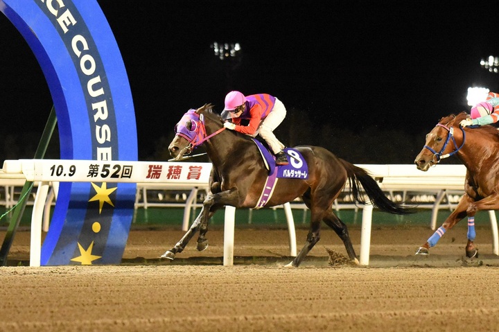 本日のメイン競走、中京スポーツ杯 第52回 瑞穂賞〔H2〕(ヴィクトワールピサ賞)[ ダート1,800m(外) 晴・不良 ]が行われ、2番人気バルダッサーレが2着ヒガシウィルウィンに1/2馬身差をつけて優勝しました。(タイム:1.52.7)