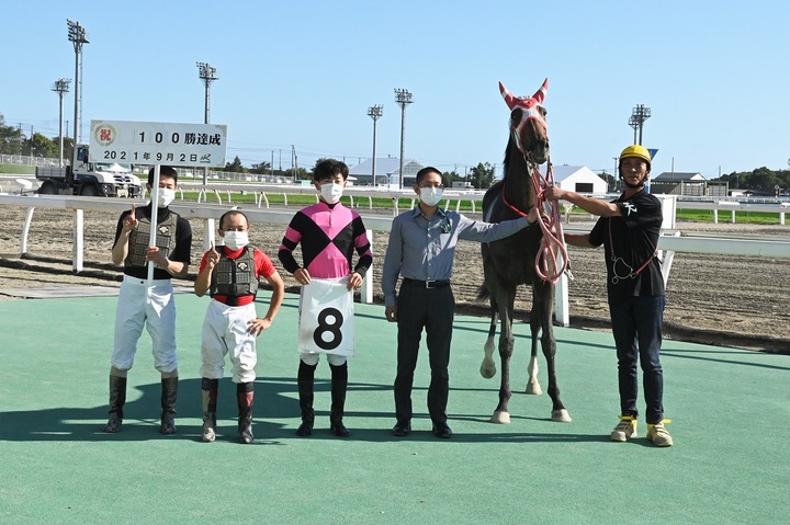 9月2日(木)、門別競馬 第2Rでレディーファルコンが1着となり、管理する佐々木国明調教師は100勝(790出走)を達成しました。