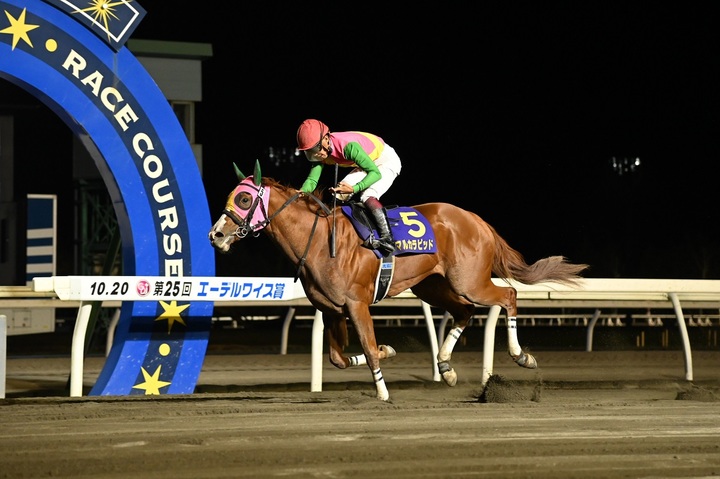本日のメイン競走、GDJ2022 農林水産大臣賞典 報知新聞社杯 第25回 エーデルワイス賞(JpnⅢ)[ダート1,200m(外) 晴・良]が行われ、4番人気マルカラピッドが2着エコロアイに21/2馬身差をつけて優勝しました(タイム:1.13.7)。