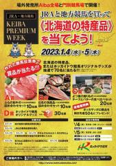 ホッカイドウ競馬場外発売所Aiba(J-PLACE)および門別競馬場では、1月4日(水)および5日(木)において、「JRAと地方競馬を買って《北海道の特産品》を当てよう!」イベントを実施いたします。
