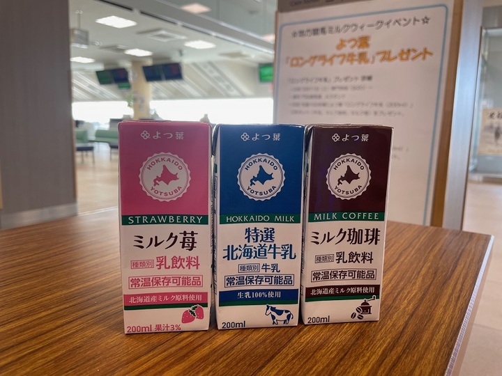 ・内容/先着100名様によつ葉「ロングライフ牛乳(200ml)」3本セット(牛乳、ミルク珈琲、ミルク苺)をプレゼントいたします。
