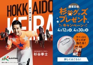 2023年度のホッカイドウ競馬が4月19日(水)に開幕することを記念し、ホッカイドウ競馬2023公式アンバサダーに就任した杉谷拳士さんのサイン入りグッズやホッカイドウ競馬オリジナルグッズが抽選で50名様に当たるプレゼントキャンペーンを実施いたします。ご希望の方は希望賞品・氏名・年齢・性別・郵便番号・住所・電話番号などを記入のうえ、応募フォームからでご応募ください。キャンペーンの詳細については、以下のとおりです。皆様のご応募お待ちしております。