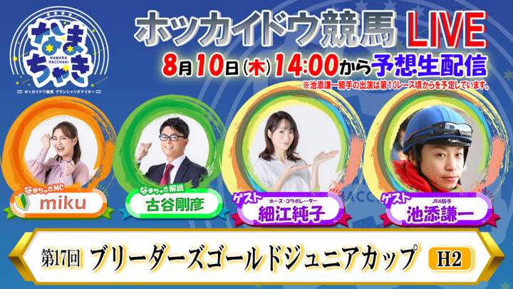 YouTube【公式】 ホッカイドウ競馬「なまちゃきLIVE」のゲスト紹介(8月10日)