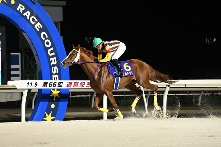本年度ホッカイドウ競馬の最終競走、農林水産大臣賞典 第66回 道営記念〔H1〕(ルーラーシップ賞)[ダート2,000m(外) 晴・稍重]が行われ、2番人気シルトプレが2着アナザートゥルースに4馬身差をつけて優勝しました(タイム:2.08.2)。