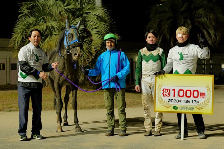 石川倭騎手1,000勝達成 その他 2023.12.18 12月17日(日)、佐賀競馬 第8競走で石川 倭(いしかわ やまと)騎手(米川 昇きゅう舎所属)がコスモセレナに騎乗し6,511戦目で1,000勝(地方・中央通算)を達成しました。 ※石川倭騎手は2023年11月12日 ~ 2024年2月25日 佐賀競馬場(真島元徳きゅう舎所属)で期間限定騎乗中 写真提供:佐賀県競馬組合