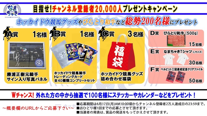 さらに、現在「目指せ!チャンネル登録者数2万人プレゼントキャンペーン」を実施中です。豪華賞品が当たるプレゼント企画となっておりますので、詳細をご確認して頂き、奮ってご応募をお待ちしております。
