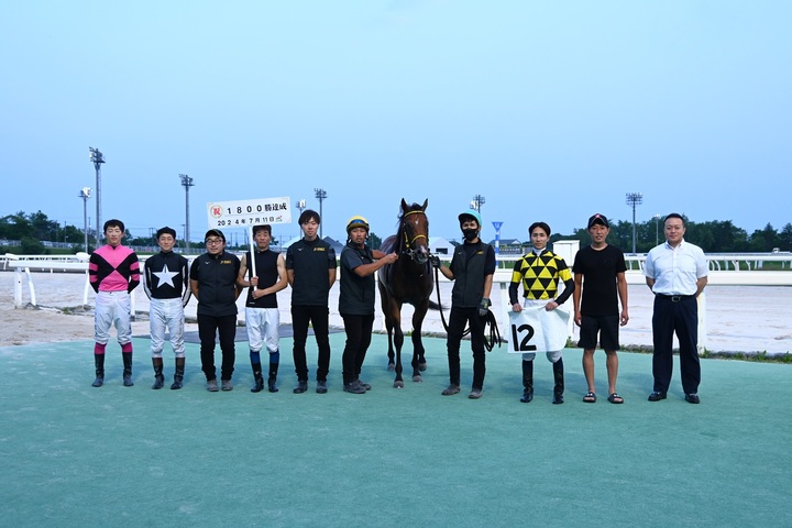 7月11日(木)、門別競馬 第9Rでロードアルフィーネが1着となり、管理する田中淳司調教師は1,800勝(8,718出走)を達成しました。