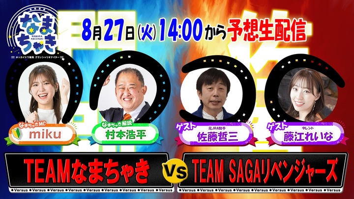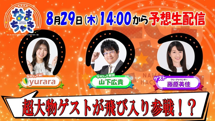 YouTube【公式】 ホッカイドウ競馬「なまちゃきLIVE」のゲスト紹介(8月27日、29日)