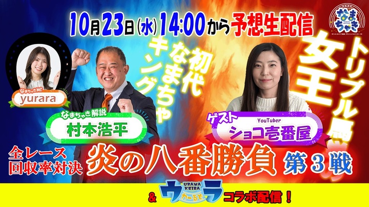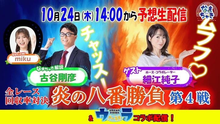 題して「炎の八番勝負~なまちゃき解説者VSゲストによる全レース回収率対決~」