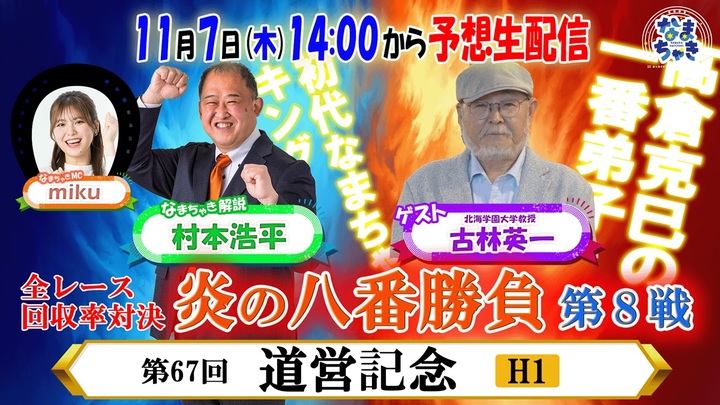 題して「炎の八番勝負~なまちゃき解説者VSゲストによる全レース回収率対決~」
