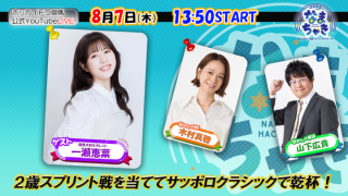 8月7日のメインレースは2歳短距離重賞「サッポロクラシックカップ」!ゲストは一瀬恵菜さんに出演いただきます!