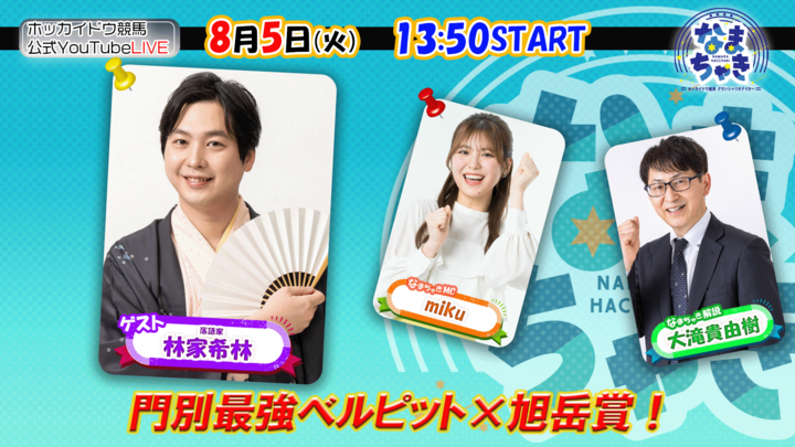 8月5日のメインレースは中距離内回り重賞「旭岳賞」!ゲストは林家希林さんに出演いただきます!