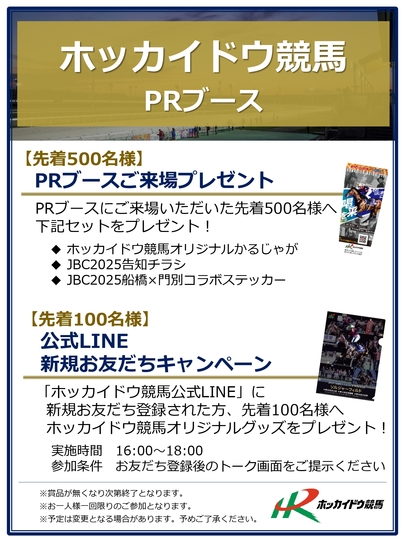10月1日(水)の船橋競馬場では、来月11月3日に迫ったJBC競走を盛り上げるため、「ホッカイドウ競馬PRイベント in 船橋競馬場」を実施いたしますので、皆様のご来場をお待ちしております。