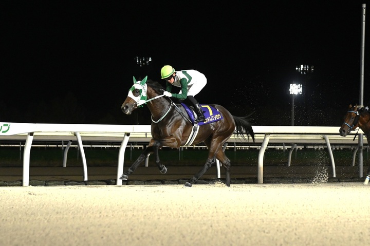 本日のメイン競走、大阪スポーツ杯 第25回 サンライズカップ〔H1〕(ソットサス賞)[ダート1,800m(外) 曇・重]が行われ、2番人気エンドレスソロウが2着スターシップに11/2馬身差をつけて優勝しました(タイム:1.57.3)。