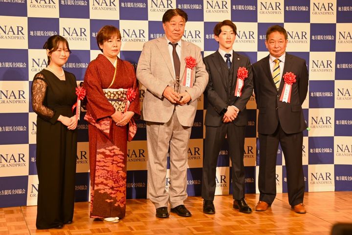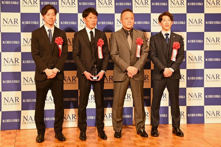 NARグランプリ2025表彰式 その他 2026.02.24 2025年に優秀な成績をおさめた地方競馬の人馬や、地方競馬の発展に功績のあった人馬等を顕彰する「NARグランプリ2025」の表彰式が2月24日(火)に東京都内のホテルで行われました。 【ホッカイドウ競馬表彰馬・表彰者】 ※馬の年齢は、すべて2025年時点 ■2歳最優秀牡馬 ベストグリーン号(2歳 田中淳司きゅう舎) 主戦騎手/小野楓馬騎手 ■2歳最優秀牝馬 リュウノフライト号(2歳 山口竜一きゅう舎) 主戦騎手/小野楓馬騎手 ■フェアプレイ賞 落合玄太騎手(田中淳司きゅう舎所属)